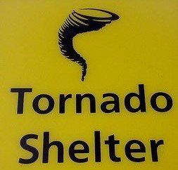 In tornado-prone areas, many homes and businesses have dedicated storm cellars or clear identified tornado shelters.